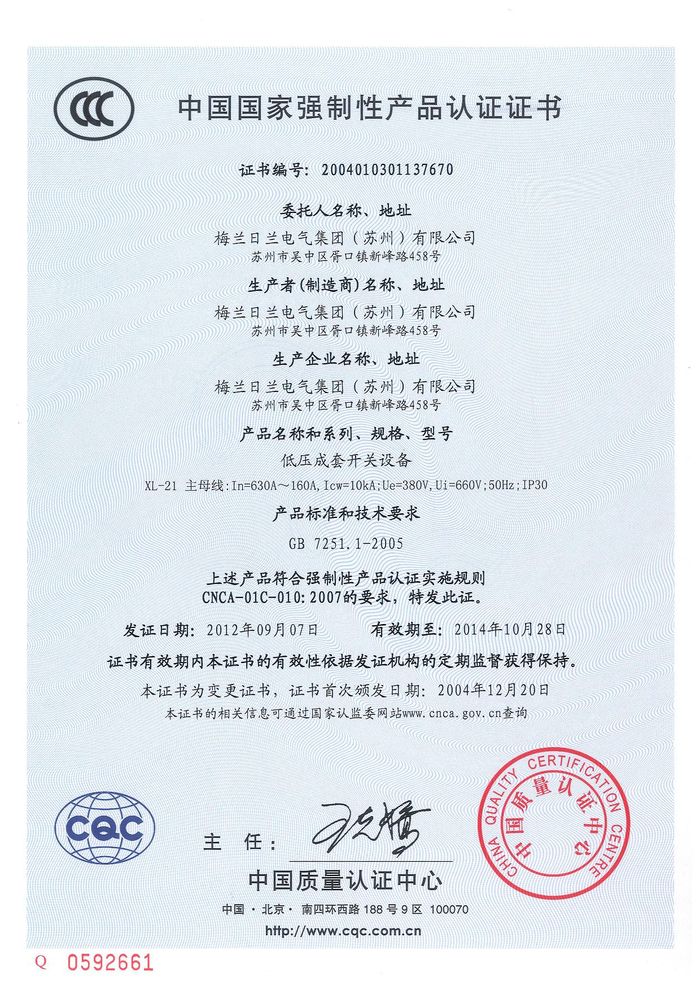 (成套)XL-21主母線資質(zhì)證書
