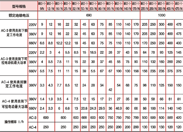 注:1.AC-3使用類(lèi)別典型用途舉例:籠型感應(yīng)電動(dòng)機(jī)的起動(dòng)、運(yùn)轉(zhuǎn)中分?jǐn)唷?br />  2.AC-4使用類(lèi)別典型用途舉例:籠型感應(yīng)電動(dòng)機(jī)的起動(dòng)、反接制動(dòng)或反向運(yùn)轉(zhuǎn)、點(diǎn)動(dòng)。